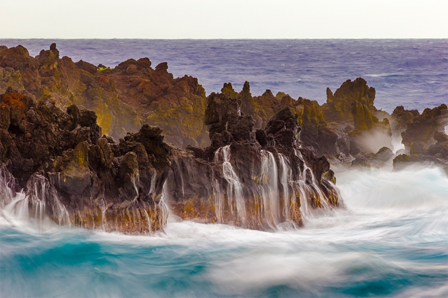 Durante millones de años, los volcanes hawaianos han formado una cadena de islas volcánicas que se extienden a largo del Pacífico norte, donde las olas del océano provenientes de todas direcciones, agitadas por tormentas distantes o por los vientos alisios, han golpeado y moldeado sus costas en diversos grados.